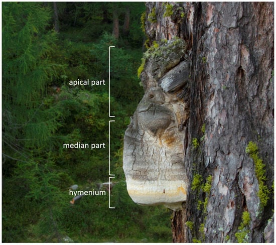 Figure 4 shows an F. officinalis mushroom with the three investigated parts.