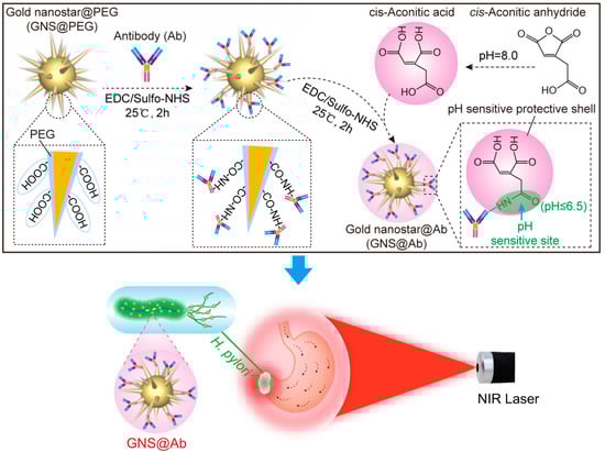 - Zhi, X.; Liu, Y.; Lin, L.; Yang, M.; Zhang, L.; Zhang, L.; Liu, Y.; Alfranca, G.; Ma, L.; Zhang, Q.; et al. Oral pH sensitive GNS@ab nanoprobes for targeted therapy of Helicobacter pylori without disturbance gut microbiome. Nanomedicine 2019, 20, 102019. [Google Scholar] [CrossRef] [PubMed]