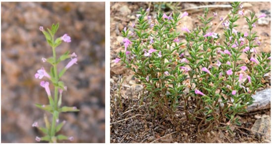 Inflorescences (left) and aerial parts (right) of Hedeoma drummondii.