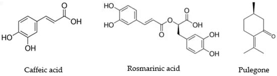 Methanolic extract of H. drummondii was partitioned with DCM:MeOH (1:1), and the polar partition was chromatographed in Sephadex LH-20 in order to obtain five fractions. The fraction 2 was rechromatographed by HPLC semi preparative to yield a mayor phenolic acid: caffeic acid (CafAc) and rosmarinic acid (RosAc), as previously described [19]. The monoterpene (R)-(+)-Pulegone was obtained commercially from Sigma-Aldrich (No. 376388).