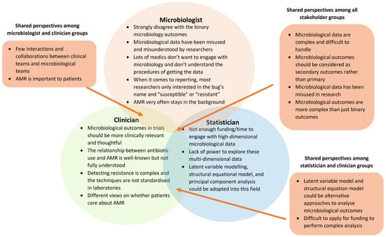 Another critical point highlighted by the microbiologists was that a lack of sufficient communication between microbiologists and infectious disease doctors when designing and conducting these trials meant that microbiological outcomes were considered less important than other outcomes (e.g., clinical outcomes). Therefore, multiple separate views on the importance of microbiological outcomes in trials were found.