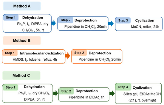 Summary of the methods used for the cyclization of the linear tripeptides.