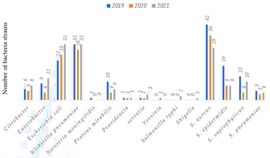 2.4. Resistance Pattern of Bacterial Strains Isolated in 2019, 2020 and 2021