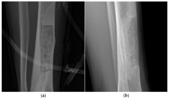 - Patzakis, M.J.; Mazur, K.; Wilkins, J.; Sherman, R.; Holtom, P. Septopal beads and autogenous bone grafting for bone defects in patients with chronic osteomyelitis. Clin. Orthop. Relat. Res. 1993, 295, 112–118. [Google Scholar] [CrossRef]