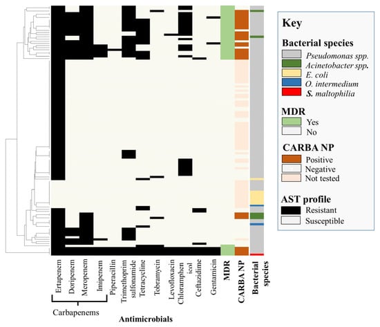 A single O. intermedium isolate was resistant to ertapenem and meropenem, with both O. intermedium isolates being negative for carbapenemase production. The single S. maltophilia isolate identified in this study was resistant to all tested antibiotics and was positive for carbapenemase production (Figure 1 and Table 1).