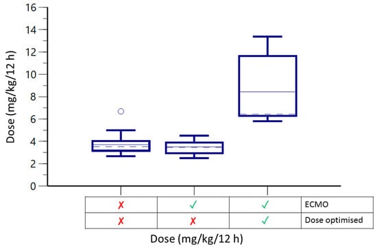 - Shekar, K.; Fraser, J.F.; Smith, M.T.; Roberts, J.A. Pharmacokinetic changes in patients receiving extracorporeal membrane oxygenation. J. Crit. Care 2012, 27, 741.e9–741.e18. [Google Scholar] [CrossRef]