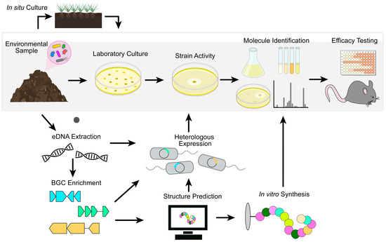 - Katz, M.; Hover, B.M.; Brady, S.F. Culture-Independent Discovery of Natural Products from Soil Metagenomes. J. Ind. Microbiol. Biot. 2016, 43, 129–141. [Google Scholar] [CrossRef]