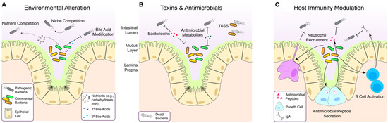 - Sorbara, M.T.; Pamer, E.G. Interbacterial Mechanisms of Colonization Resistance and the Strategies Pathogens Use to Overcome Them. Mucosal Immunol. 2019, 12, 1–9. [Google Scholar] [CrossRef]