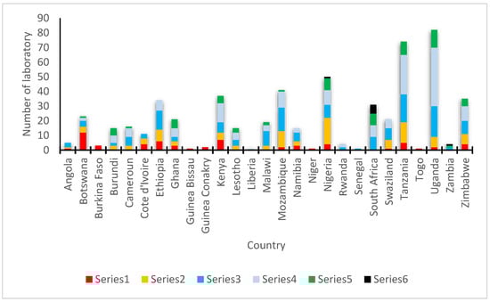 Laboratory quality assurance refers to the processes and procedures that laboratories use to ensure the accuracy and reliability of their test results. In Africa, laboratory quality assurance is an important tool for improving the quality of laboratory services and ensuring the reliability of test results. Despite the importance of laboratory quality assurance, many laboratories in Africa face significant challenges in implementing effective quality assurance programs. These challenges include a lack of resources, inadequate infrastructure, and limited access to training and technical support. To address these challenges, several organizations are working to support laboratories in Africa in their efforts to improve their quality assurance practices. One such organization is the African Society for Laboratory Medicine (ASLM), which promotes the use of the Stepwise Laboratory Quality Improvement Process Towards Accreditation (SLIPTA) framework [22]. SLIPTA provides a structured approach for laboratories to assess their current level of quality and identify areas for improvement using a star criteria (Figure 2). The framework includes a focus on quality assurance practices such as internal and external quality control, proficiency testing, and continuous quality improvement [22]. Countries are graded using the star criteria.