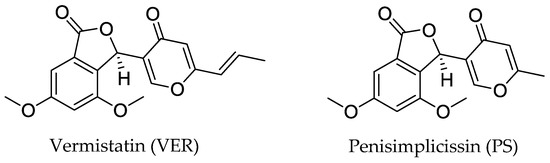 - Komai, S.I.; Hosoe, T.; Itabashi, T. New vermistatin derivatives isolated from Penicillium simplicissimum. Heterocycles 2005, 65, 2771–2776. [Google Scholar]