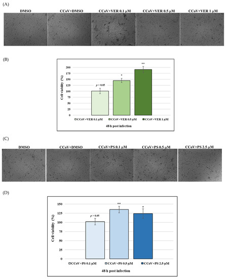 2.1. Funicone-like Compounds VER and PS Have Antiviral Activity against CCoV Infection