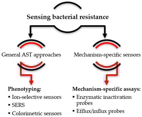 | Phenotyping | Classical approach, providing information on both bacterial growth and susceptibility | Application in medicine requires more rapid and cost-effective methods | Ion-selective sensors | [124] |