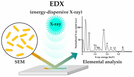- Haddad, G.; Takakura, T.; Bellali, S.; Fontanini, A.; Ominami, Y.; Khalil, J.B.; Raoult, D. A Preliminary Investigation into Bacterial Viability Using Scanning Electron Microscopy–Energy-Dispersive X-Ray Analysis: The Case of Antibiotics. Front. Microbiol. 2022, 13, 967904. [Google Scholar] [CrossRef] [PubMed]