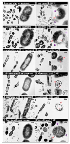 Figure 1 represents the morphology of various cariogenic bacteria that were treated with or without GAPI.
