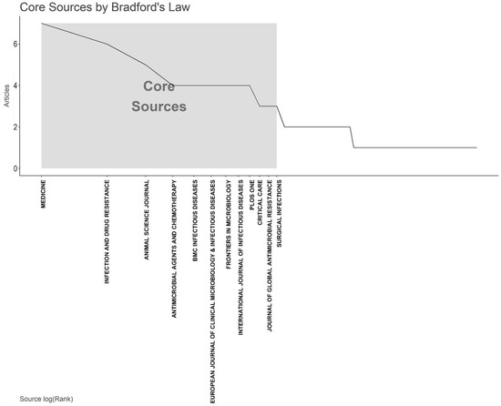 The plot of Broadford’s Law identified twelve core journals on the antimicrobial resistance among pneumonia pathogens (2013–2023).