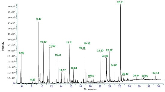 2.4. Gas Chromatography–Mass Spectrometry Analysis