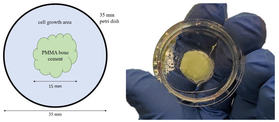 - Group 2: 0.5 g PMMA bone cement (2 × 6 dishes osteogenic differentiation, 2 × 6 dishes control)