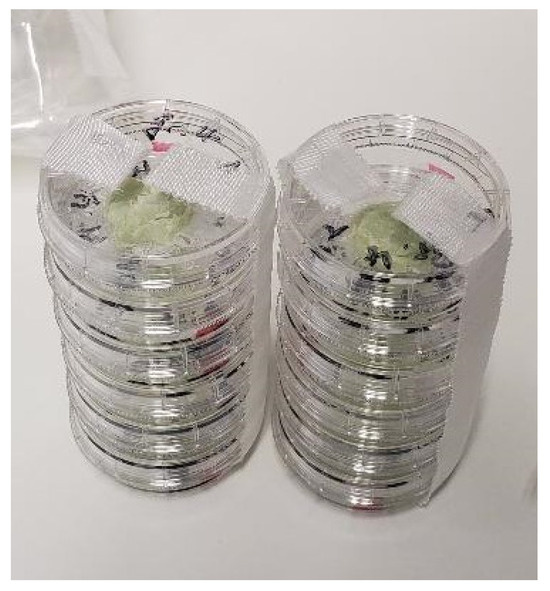 Following this, 144 35 mm flat-bottom Petri dishes were prepared by blocking a radius of r = 0.75 cm with one of the following substances (see Figure 5):