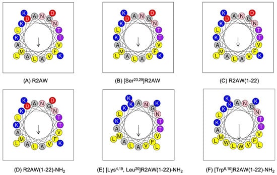4.4. Synthesis of R2AW and Its Five Designed Analogues