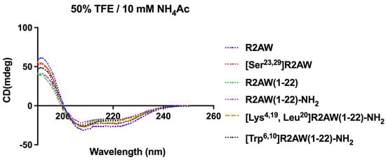 | [Trp6,10]R2AW(1-22)-NH2 | 20.7 (8) | 41.4 (16) | 20.7 (8) | 82.8 (32) | 41.4 (16) | 166 (64) |
