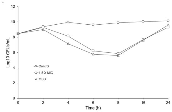 CFUs/mL were determined over time by plating dilutions onto Mueller-Hinton agar (MHA) followed by overnight incubation (37 °C).