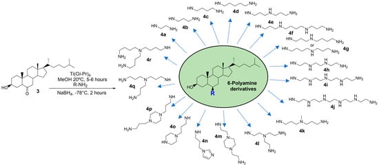 3.1. The Synthesis of 6-Polaminosteroid Derivatives