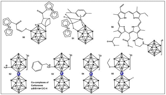 - Issa, F.; Kassiou, M.; Rendina, L.M. Boron in Drug Discovery: Carboranes as Unique Pharmacophores in Biologically Active Compounds. Chem. Rev. 2011, 111, 5701–5722. [Google Scholar] [CrossRef] [PubMed]
