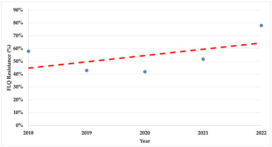 The trend of fluoroquinolone resistance rates during the study period. FLQ—Fluoroquinolones.