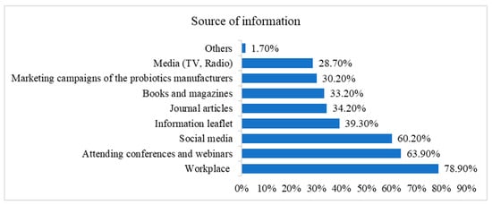- Fijan, S.; Frauwallner, A.; Varga, L.; Langerholc, T.; Rogelj, I.; Lorber, M.; Lewis, P.; Bržan, P.P. Health Professionals’ Knowledge of Probiotics: An International Survey. Int. J. Environ. Res. Public Health 2019, 16, 3128. [Google Scholar] [CrossRef] [PubMed]