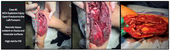 Recent medical missions to Gaza have provided valuable insights into infection control practices and highlighted the severe strain on the healthcare system evidenced by hardships for local medical workers, the overcrowding of hospital corridors, and a critical shortage of sterile supplies [7,21,22]. The escalating violence has overwhelmed hospitals, depleted medical supplies, and increased risks of infections, particularly in patients with fractures [23]. Infection prevention is further complicated by the risk of hematogenous spread, comorbidities, and infections in already injured or multi-fractured patients. Furthermore, the mental health implications of residing in conflict zones underscore the necessity of a comprehensive national strategy to address the well-being of vulnerable populations, especially children and adolescents who may suffer from fractures and other injuries [24]. Orthopedic missions in these challenging conditions highlight the need for quality assurance practices, sustainable planning, and the use of measurable indicators to ensure that the mission’s goals—treating acute injuries and maintaining infection control standards—are effectively achieved [25]. The purpose of this article is to present the orthopedic injury patterns observed in Gaza and describe the current challenges associated with operating in an ongoing war zone. We anticipate that FRI will be a common complication of orthopedic trauma given the widespread malnutrition, limited antibiotic therapies, and poor sanitary conditions. The recommendations offered in this article may benefit visiting surgeons operating without adequate infrastructure and limited supply inventory.