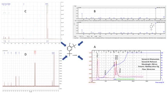 OFAP18 was collected in Rwanda at a precise place located at the GPS coordinates 2°26′53.0″ S 29°04′07.0″ E, in the form of a black gum. Briefly, 9.0 g of propolis OFAP18 was extracted with 15 mL of ethanol (water–ethanol (30:70, v/v)) by using a Biotage initiator microwave apparatus operating for 10 min at 100 °C and 2 bars. After centrifugation and filtration, this led to an ethanol extract of which the propolis concentration was determined to be 120 mg/mL and was subsequently used for biological tests and flash chromatography (from non-polar to polar, namely petroleum ether, ethyl acetate, and methanol).