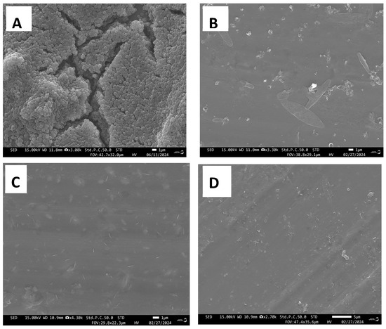 3.3. Scanning Electron Microscopy (SEM) Observation