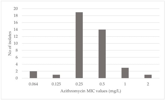 Azithromycin MIC distribution for lpeAB-positive isolates.