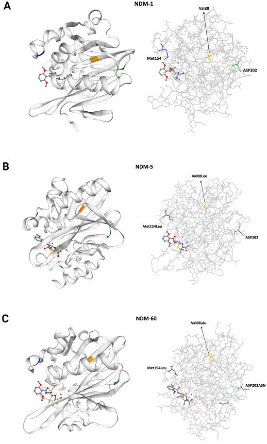 A protein model of NDM-60, compared to the closely related NDM-5 and prototypic NDM-1 proteins, was generated using the SWISS-MODEL platform, an automated ExPASy homology modeling server available at https://swissmodel.expasy.org/, accessed on 1 November 2024 [76].