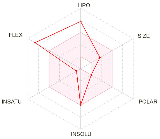 Bioavailability radar of phytol’s physicochemical properties compared to reference values of pharmaceutical medicines. The red line refers to the properties of Phytol.