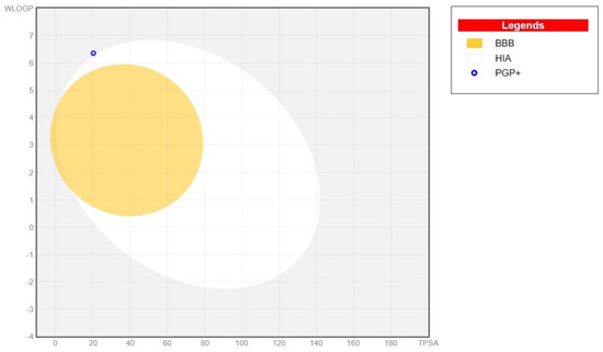 BOILED-egg graph representing the distribution and absorption properties of Phytol; HIA: human intestinal absorption; BBB: blood-brain barrier; P-gp; P-glycoprotein.