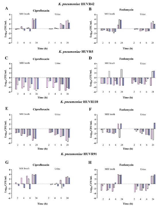 4.3. Bactericidal Activity of Ciprofloxacin and Fosfomycin against E. coli and K. pneumoniae Strains at Different pH Conditions