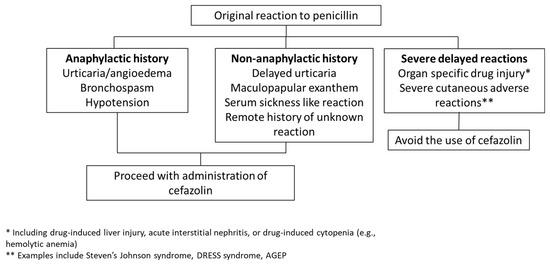 - Cooper, J.J.; Atluri, V.L.; Jain, R.; Pottinger, P.S.; Coleman, D.T. Safety of cefazolin for perioperative prophylaxis in patients with penicillin allergy labels. Ann. Allergy Asthma Immunol. 2022, 129, 115–117. [Google Scholar] [CrossRef] [PubMed]