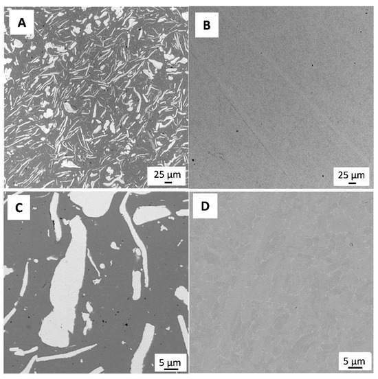 SEM image of polished surface of 3Y-TZP/Ta (A,C) and titanium alloy (B,D) disks.