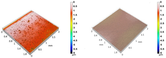 Three-dimensional surface topographies of polished 3Y-TZP/Ta (left) and Ti alloy (right) disks.
