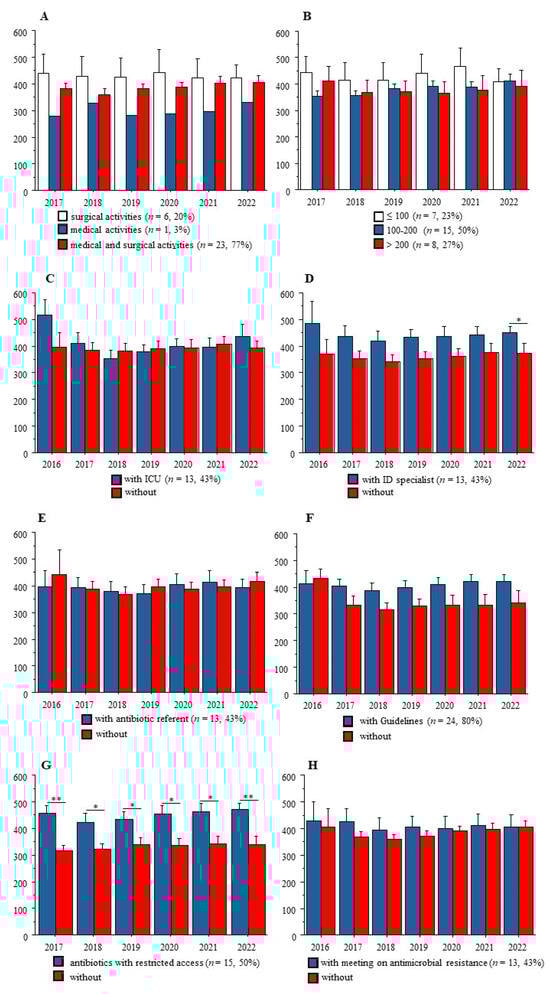 APA StyleRoger, P.-M., Lesselingue, D., Gérard, A., Roghi, J., Quint, P., Un, S., Chincholle, A., Assi, A., Bouchard, O., Javaudin, V., & Denes, E. (2024). Antibiotic Consumption 2017–2022 in 30 Private Hospitals in France: Impact of Antimicrobial Stewardship Tools and COVID-19 Pandemic. Antibiotics, 13(2), 180. https://doi.org/10.3390/antibiotics13020180