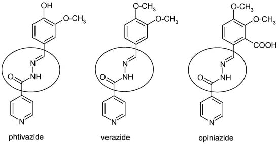 - Nogueira, T.C.M.; dos Santos Cruz, L.; Lourenço, M.C.; de Souza, M.V.N. Design, synthesis and anti-tuberculosis activity of hydrazones and N-acylhydrazones containing vitamin B6 and different heteroaromatic nucleus. Lett. Drug Des. Discov. 2019, 16, 792–798. [Google Scholar] [CrossRef]