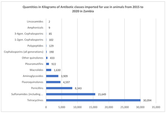 - Azabo, R.; Mshana, S.; Matee, M.; Kimera, S.I. Antimicrobial Usage in Cattle and Poultry Production in Dar Es Salaam, Tanzania: Pattern and Quantity. BMC Vet. Res. 2022, 18, 7. [Google Scholar] [CrossRef]