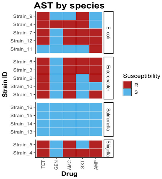 2.3. Antimicrobial Sensitivity Showed Multidrug Resistance (MDR) among Enterobacteriaceae