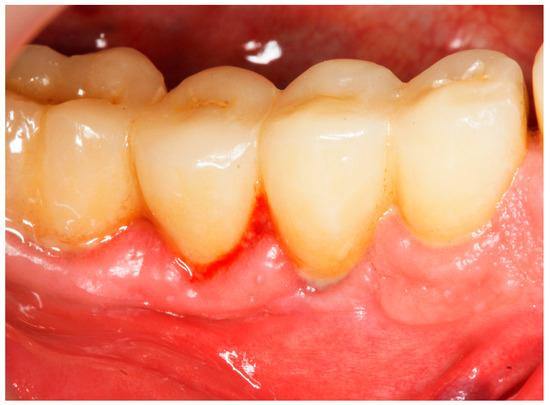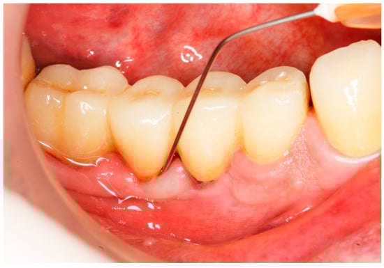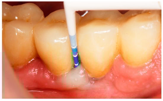 Bleeding on probing (BoP) was recorded as 0 (no bleeding) or 1 (bleeding) after probing for PPD [15] (presence/absence of bleeding within 30 s following probing) (Figure 1);