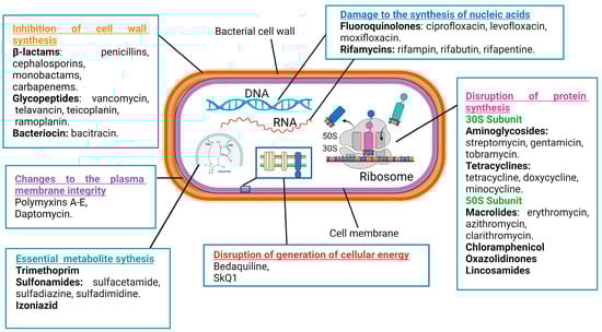 Multiple mechanisms of resistance to antibacterial drugs have been discovered by bacteria, including drug inactivation, modification of the antibiotic’s targets in bacteria, reduced intracellular drug accumulation due to decreased permeability and antibiotic efflux, formation of biofilms, overexpression of molecular targets that are affected by antibiotics, and utilization of alternative metabolic pathways [100,104,105].