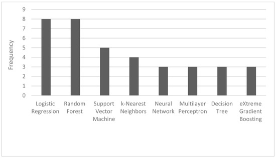 Frequency of the most used AI algorithms.