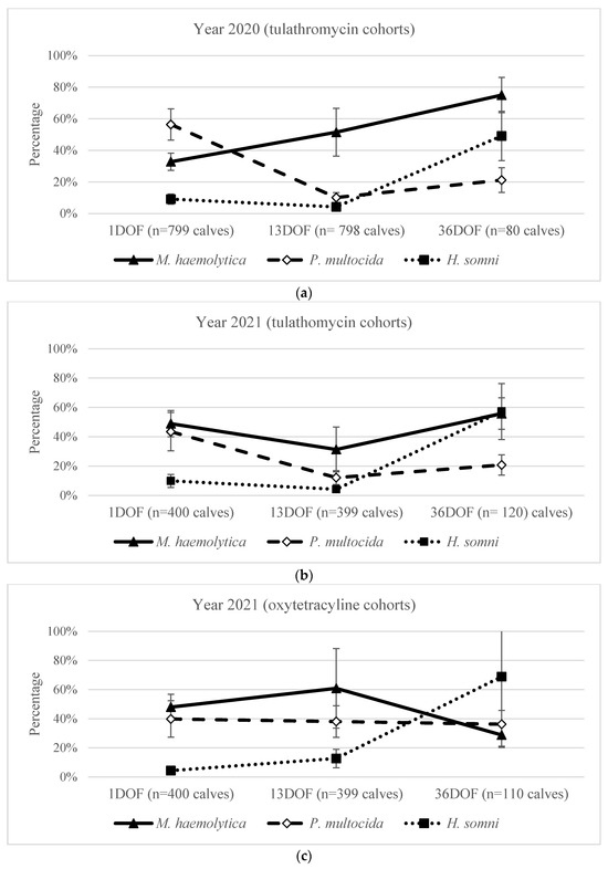 2.6. Differences in Antimicrobial Susceptibility of Bacteria between Years at 13DOF