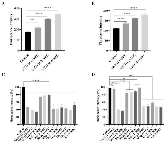 4.4.1. Effect of NZ2114 on Inhibit Biofilm Formation