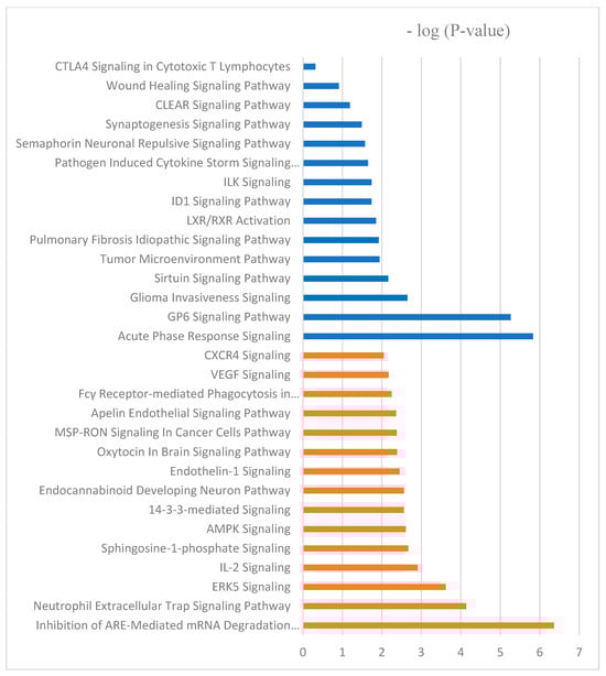 2.4. IPA Canonical Pathways Enriched with Differentially Abundant Proteins
